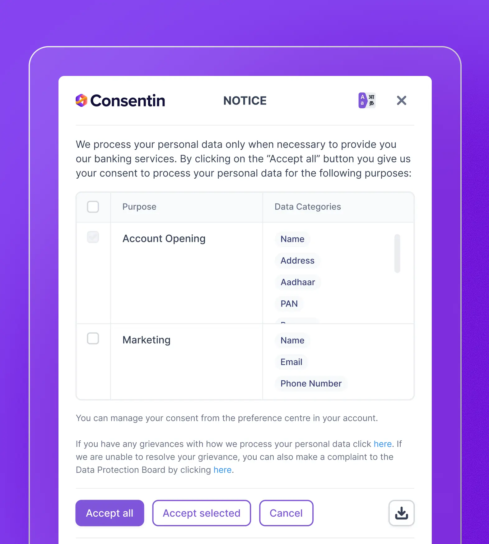 - Use a Consent Manager: Integrate a Consent Manager to streamline cookie consent collection and ensure compliance with DPDP Act standards.