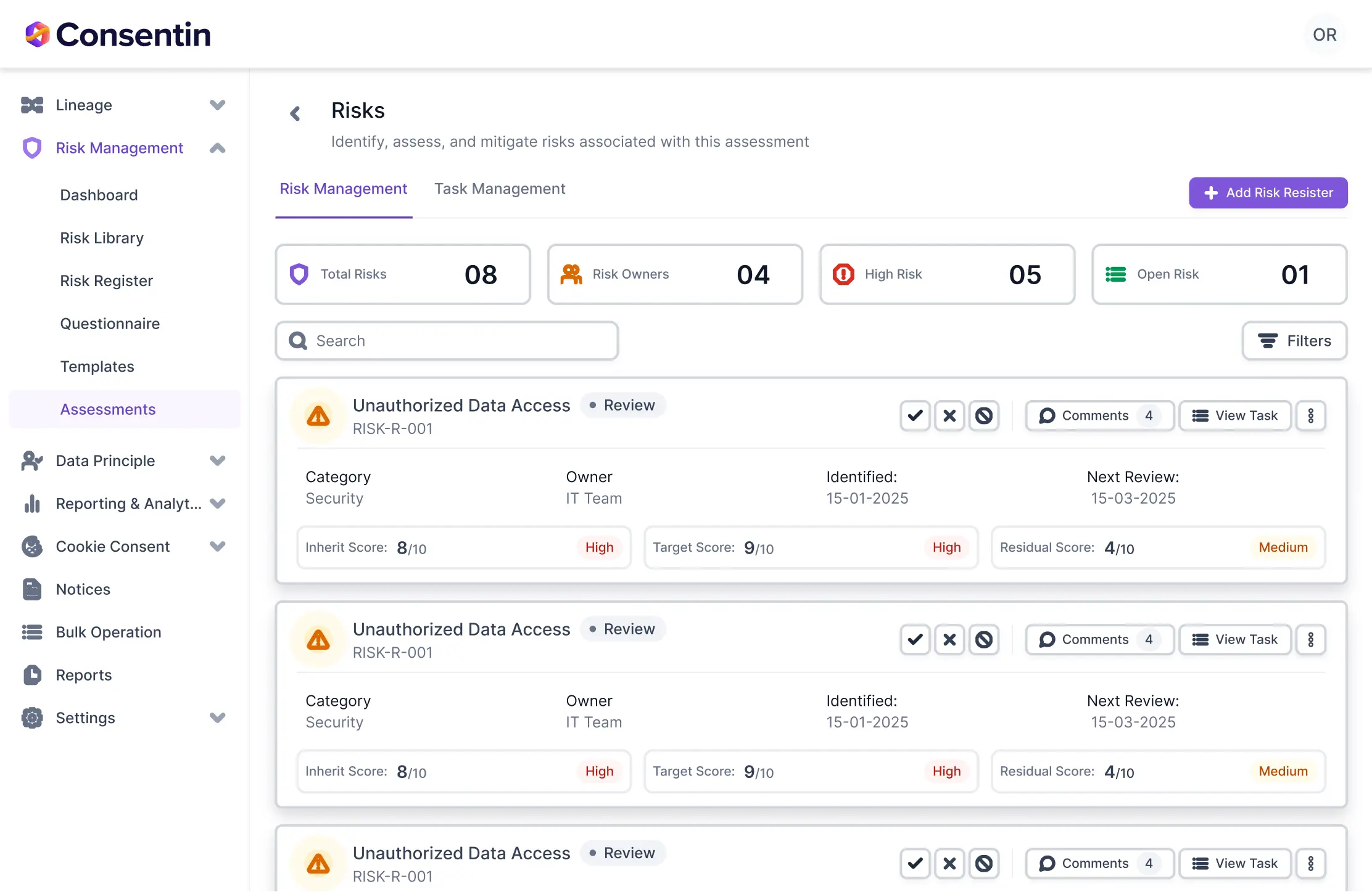 Manage risk mitigation tasks effectively by attaching them to individual risk register entries